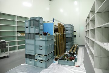 Arrivées en réserve, les caisses contenant les coiffes sont passées en anoxie afin de supprimer toute infestation éventuelle. Après un mois dans une poche hermétique, les 130 coiffes et 14 plumets ont pris place dans leur nouvel espace.